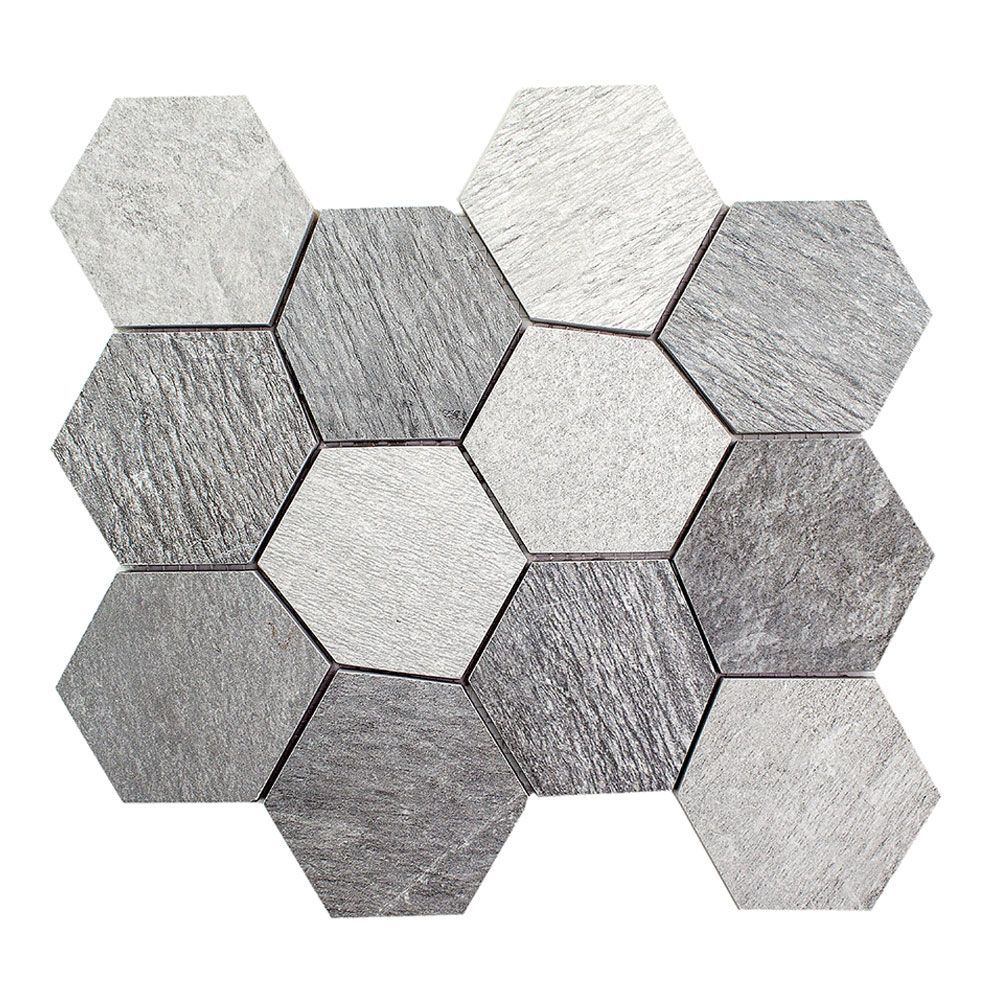 Mosaik Fliesen - Esagona Ardesia antracite/bianco/grigio Netz 25,9x22,4cm