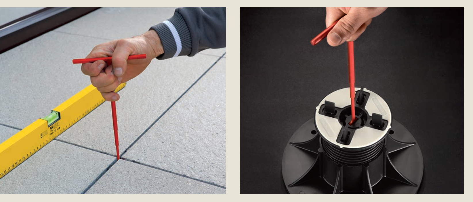 Zum Feinausgleich kleiner Unebenheiten unter den Stelzlagern. Verbessert die Auflage und reduziert Spannungen.