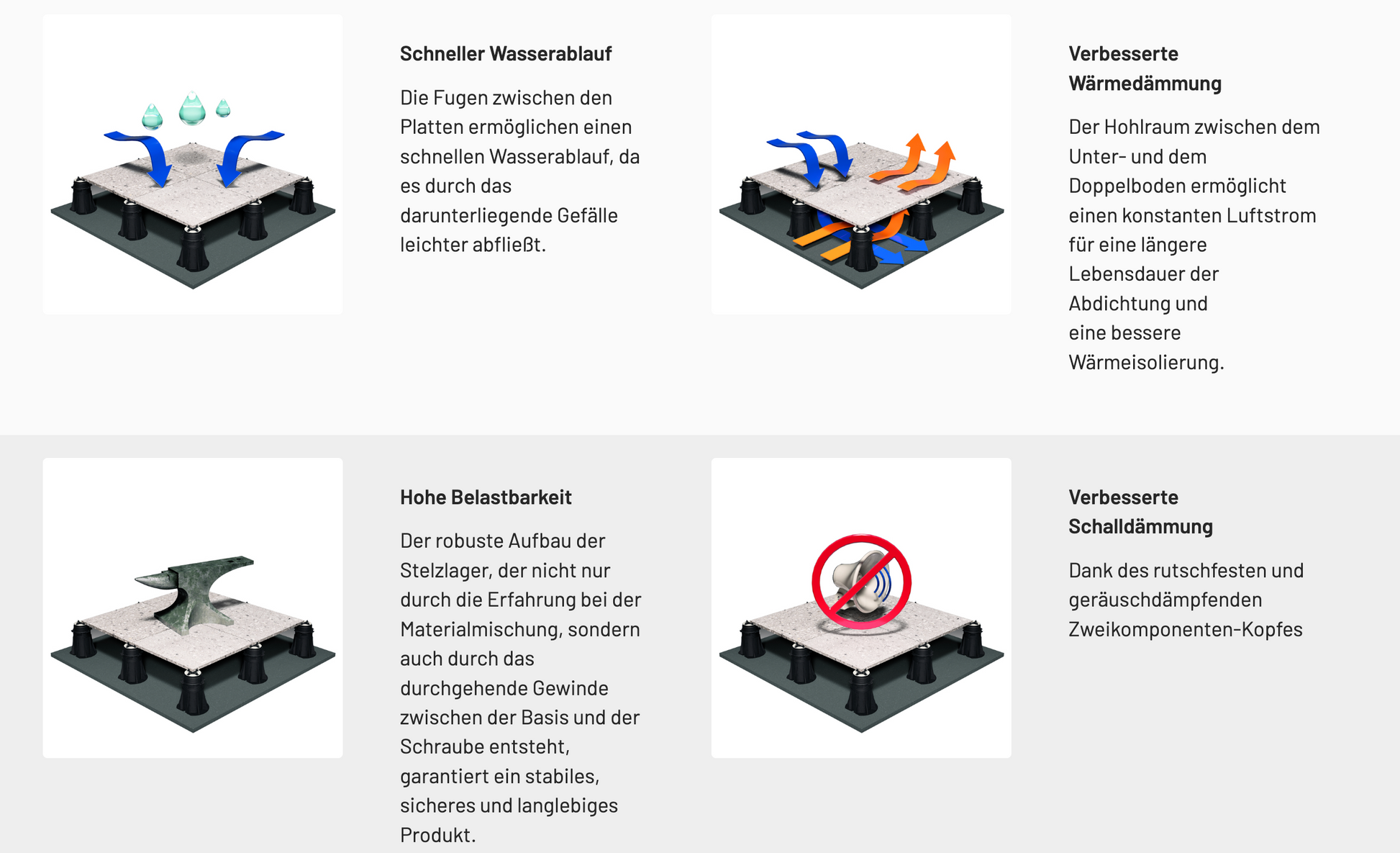 Vergrößert die Auflagefläche der Stelzlager bei empfindlichen Untergründen wie Abdichtungen oder Dämmungen und sorgt für eine bessere Lastverteilung.