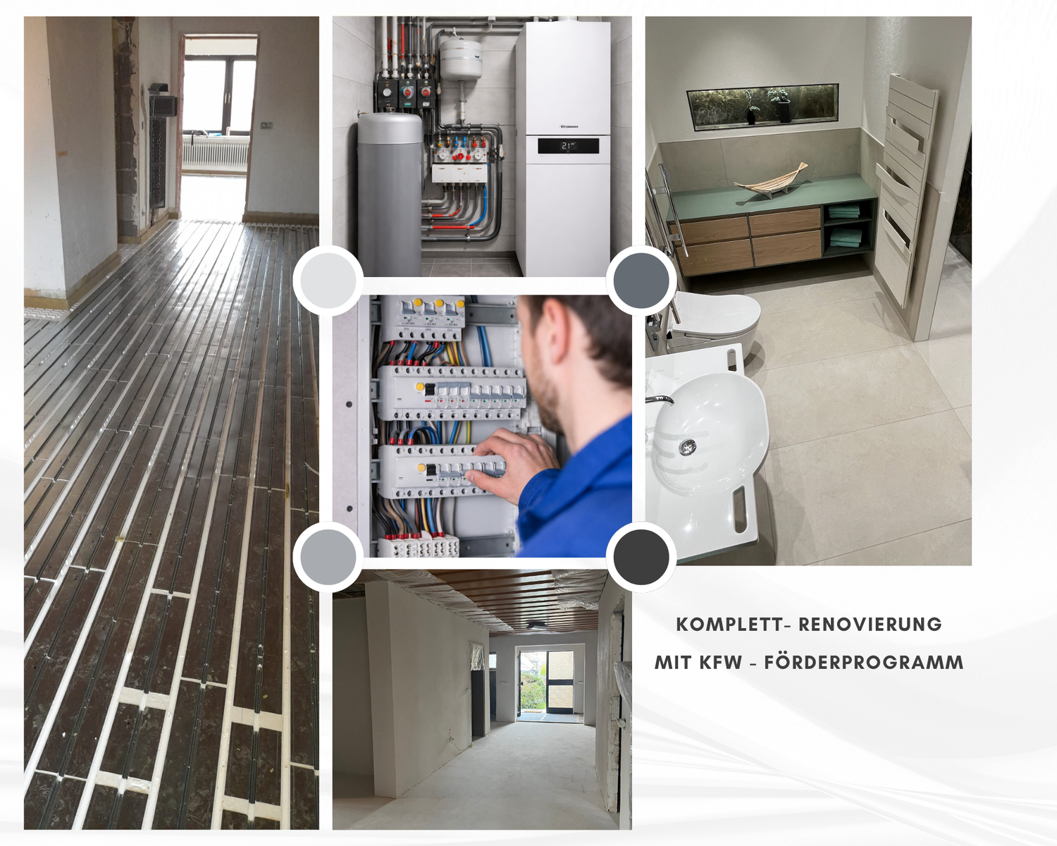 Dieses Projekt umfasste die vollständige technische und optische Sanierung eines Einfamilienhauses. MADEO übernahm dabei die Gesamtkoordination aller beteiligten Handwerksbetriebe und war zentraler Ansprechpartner für den Bauherrn – von der Planung bis zur Fertigstellung.