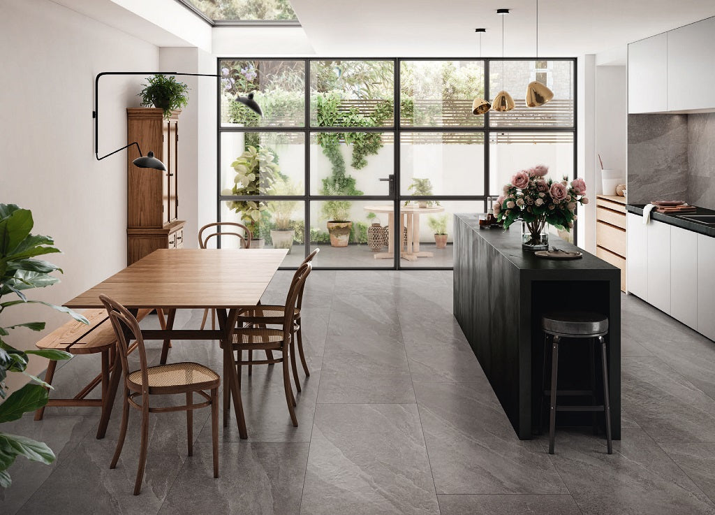 Fliesenoberfläche: Schieferstein-Optik Fliesen vereinen die natürliche Eleganz von Schiefer mit der Pflegeleichtigkeit von Keramik. Sie bieten eine authentische Struktur, dezente Farbnuancen und sind ideal für Innen- und Außenbereiche. Zeitlos, robust und vielseitig einsetzbar.