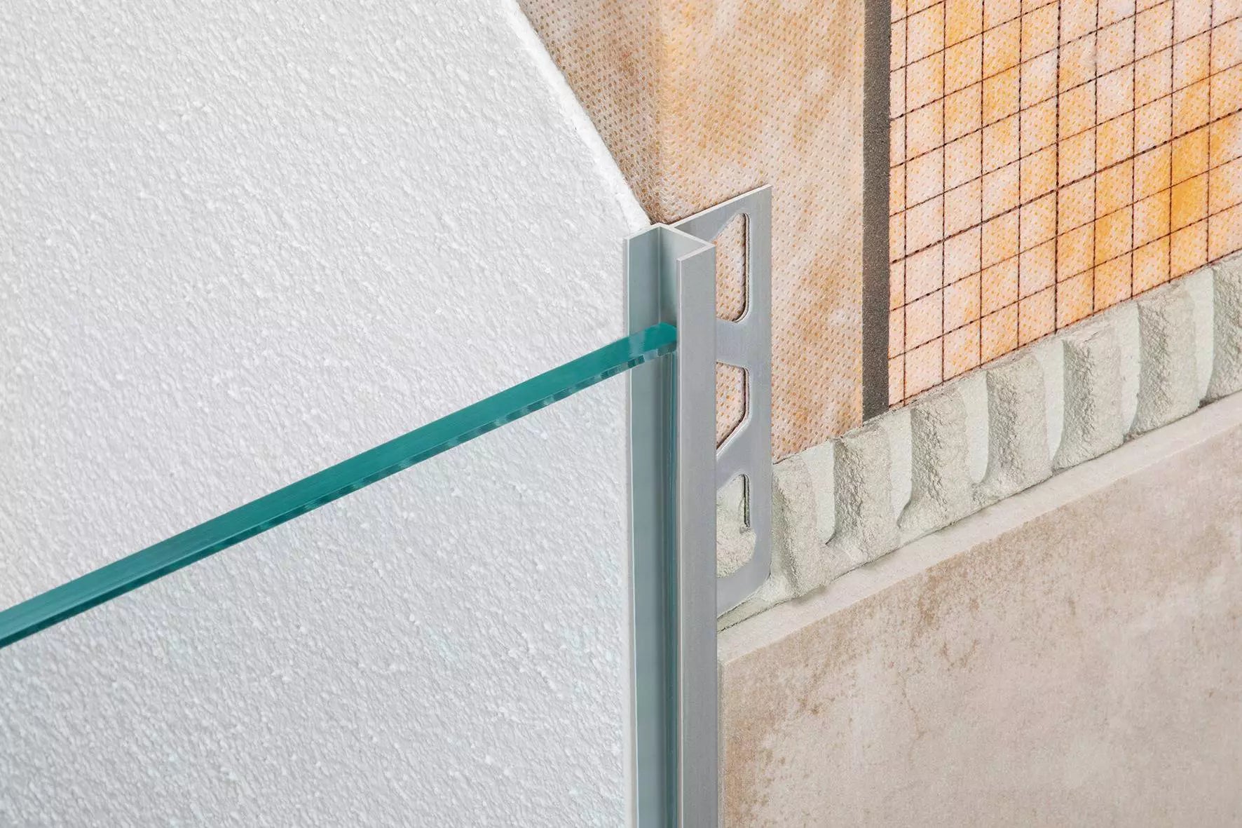 Schlüter-Deco-SG - Aufnahmeprofil - Benutzung in der Dusche für Glaswände