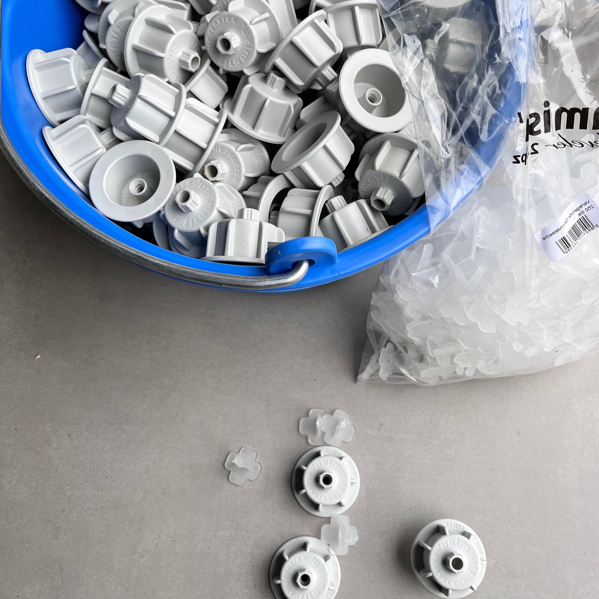 Verlegehilfe Set 250 Stück Gewindelasche + 150 Stück Zughauben (für Fliesen bis 12mm)